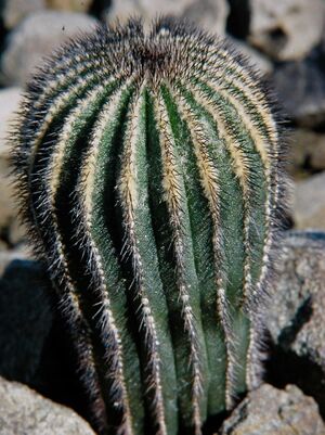 Egyhajtású növény, idős korában sem sarjad. Kezdetben gömb alakú, később oszloposodik, többnyire 50 cm magasra és 10–17 cm átmérőjűre fejlődik, de az élőhelyen akár 100 cm magas példányok is előfordulnak.